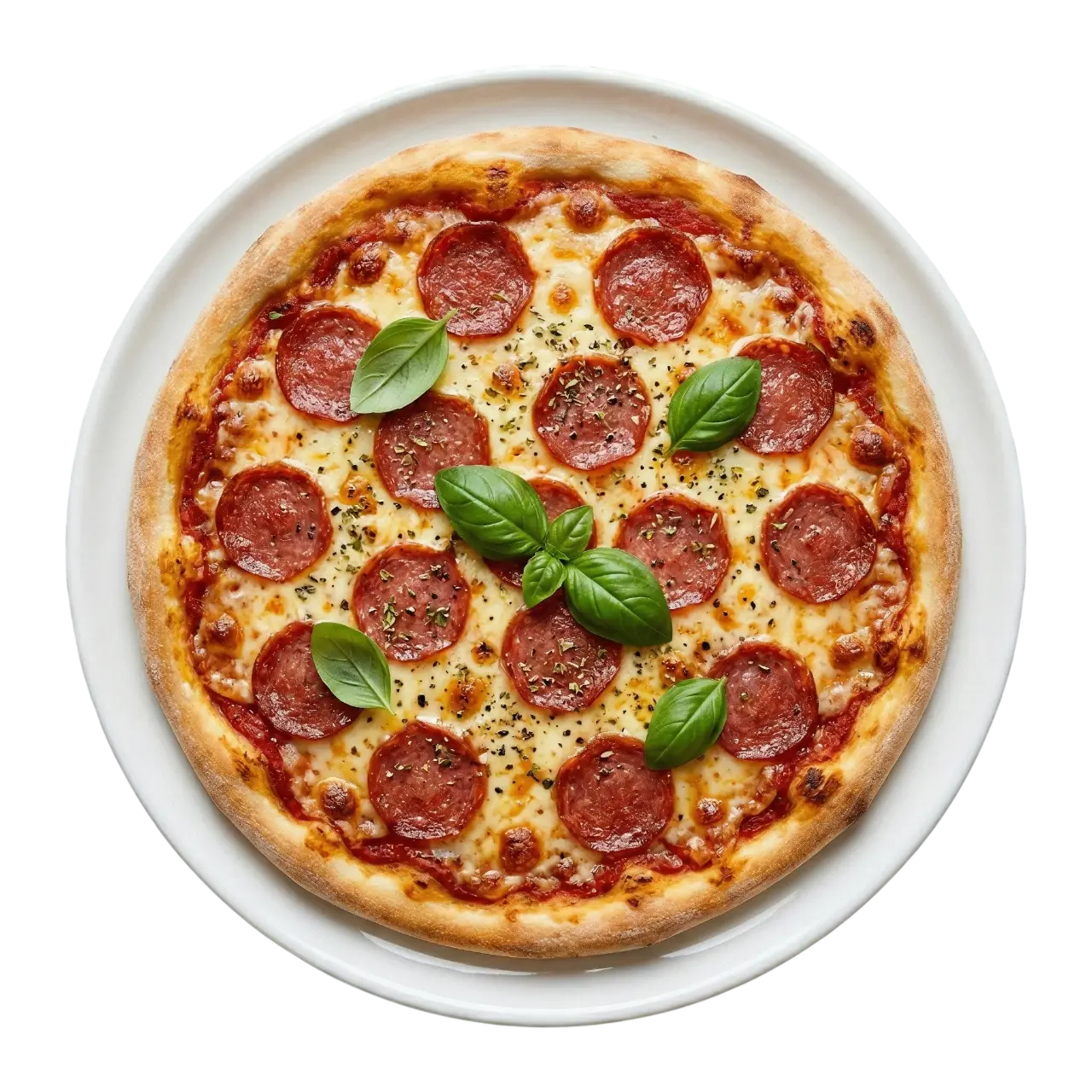 San Marzano Tomaten, frischer Mozzarella, gereifte Premium-Salami, Basilikum