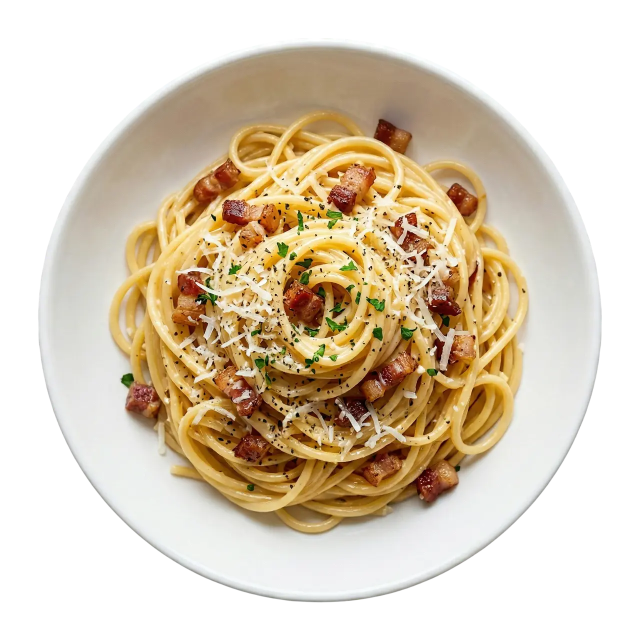 Freiland-Eigelb, gereifter Pecorino, knuspriger Guanciale, schwarzer Pfeffer